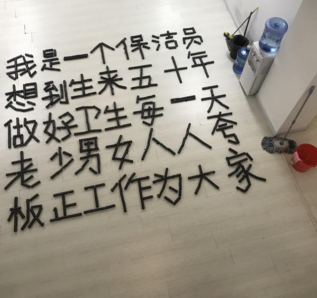 這位保潔阿姨別出心裁用423卷垃圾袋在地上拼出一首“打油詩”當作簡歷并意外走紅,簡歷上寫道:“我是一個保潔員,想到生來五十年,做好衛生每,老少男女人人夸,板正工作為大家”,以此說明了自己應聘的理由。